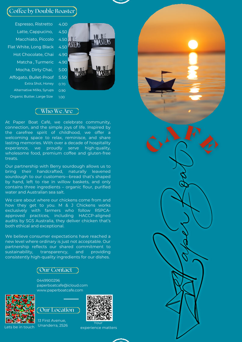 Welcome to Paper Boat Cafe, a charming hideaway located at 13 First Ave, Unanderra. This delightful café offers a menu that captivates both the eyes and the palate. The highlight is an array of mouth-watering smoothies, including flavors like Banana, Mango, and Strawberry, each available for just A$8.90.